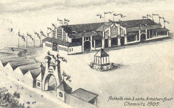 Ein besonderer Höhepunkt im Sportgeschehen der Stadt war auch das 3. Sächsische Kreisturnfest vom 15.- 18. Juli 1905 mit über 14.000 Sportlern auf der Planitzwiese. Vor allem massenturnerische Übungen aber auch Geräteturnen im Freigelände an 40 Barren, 20 Recks und 6 Turnpferden fanden statt. |