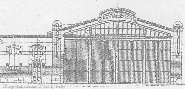 Nach dem Abbau der Festhalle wurde in dem östlich angrenzenden Gelände im Jahr 1906 eine kleine, viergleisige Straßenbahnhalle errichtet, die schließlich 1926/27 zu einem großen Straßendepot erweitert wurde. |