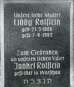 Liddy Rotstein und ihre Kinder überlebten den Krieg. Als Liddy 1962 starb und auf dem jüdische Friedhof in Chemnitz bestattet wurde, ließen die Kinder auf dem Grabstein auch einen Zusatz für ihren im Ghetto verstorbenen Vater anbringen. |