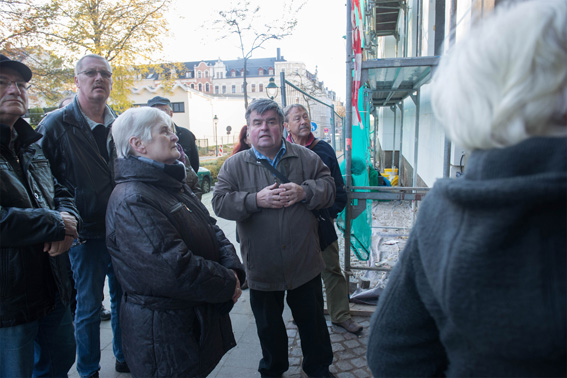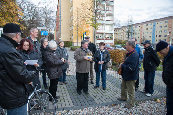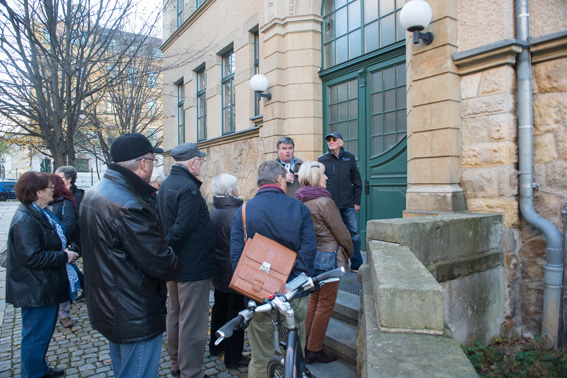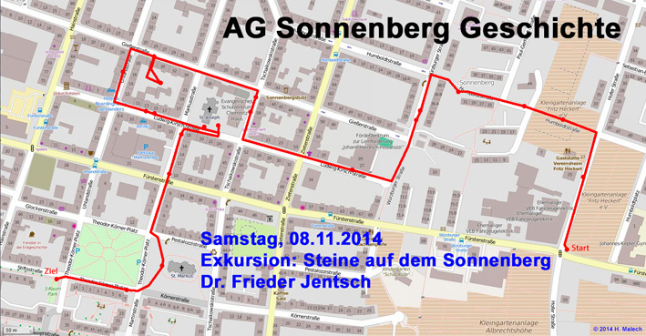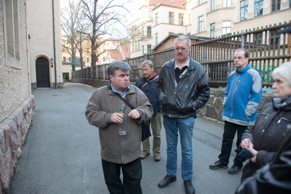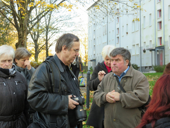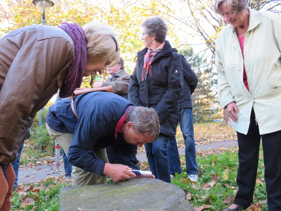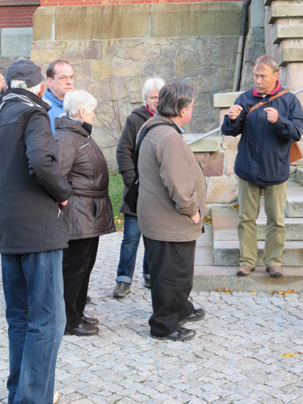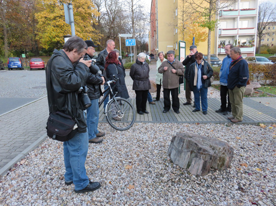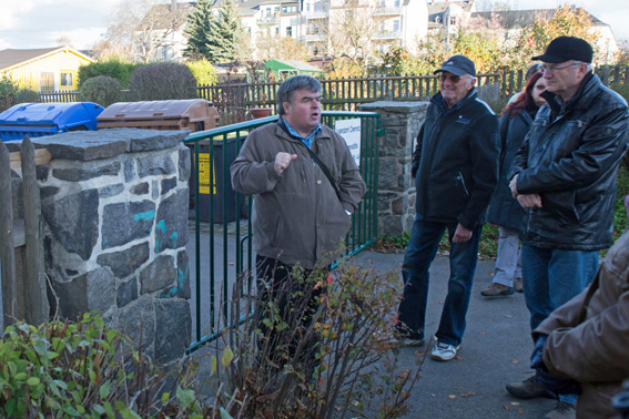| Am Samstag, den 8. November fand die erste Exkursion statt. Sie schloss sich an den Vortrag vom Freitag an. Es ging also um Steine auf dem Sonnenberg, ganz praxisbezogen geführt von Dr. Frieder Jentsch. | ||