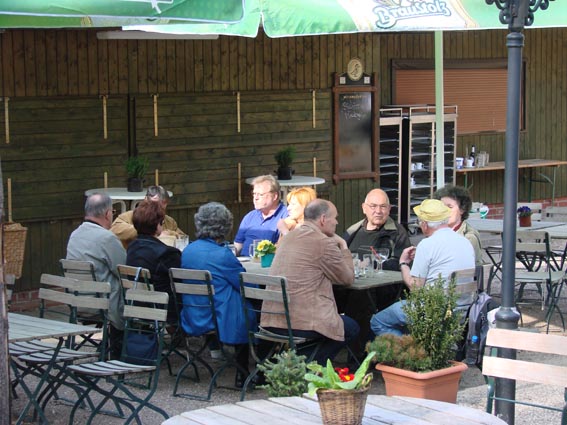| Als sehr wohltuend erwies sich, dass das geplante Ende der Exkursion im Biergarten der Waldschänke stattfand und sich sowohl der Wanderführer Herr Uhlich als auch alle interessierten Wanderer die trockenen Kehlen nicht nur mit Wasser sondern auch mit Bier spülen konnten. | |||||