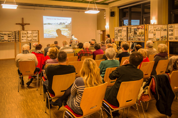 Der letzte Vortrag in der Festwoche wurde von Dr. Frieder Jentsch gehalten. Es ging um Steine und Gesteinsarten auf dem Sonnenberg. Steine im Untergrund, Steine als Natur- und Baumaterieal usw.