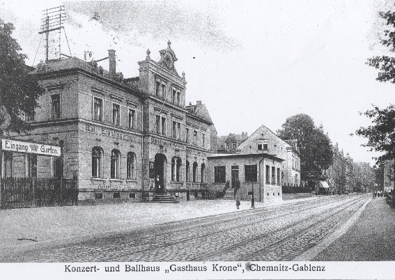 Das ehemalige Gasthaus „Krone“ befindet sich am Fuße des Sonnenberges, an der Augustusburger Straße. Es ist eines der ältesten Gasthäuser der Stadt. Bereits vor 1837 stand hier der Vorgängerbau des heutigen, 1887 entstandenen Gebäudes. Um 1912 wurde der Saal mit einer wunderschönen Deckenbemalung angebaut und später auch noch eine Kegelbahn. In der warmen Jahreszeit war auch der angrenzende Kaffeegarten gut besucht. |