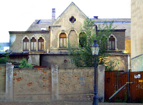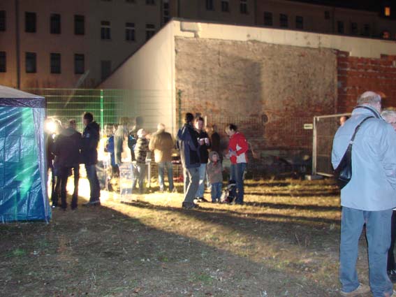 Nach dem Abbruch des Saalgebäudes im Dezember 2006 erinnert an der Hausfront der Hainstraße 36 nur noch die Leuchtschrift an die alten Zeiten. Und durch den Zaun an der Glockenstraße war anstelle des Saalgebäudes nur grüner Rasen zu sehen.