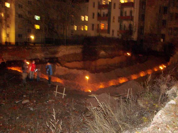 Inzwischen hat sich auch das verändert. Eine Suchschachtung im Jahr 2009 legte die mit Abbruchmassen verfüllten Kellerräume frei und ein neues Vorhaben kündigt sich an. Voraussichtlich wird in einigen Jahren hier wieder Neues zu bestaunen sein: Ein "Fenster in die Erdgeschichte" soll in den Untergrund gegraben werden. |